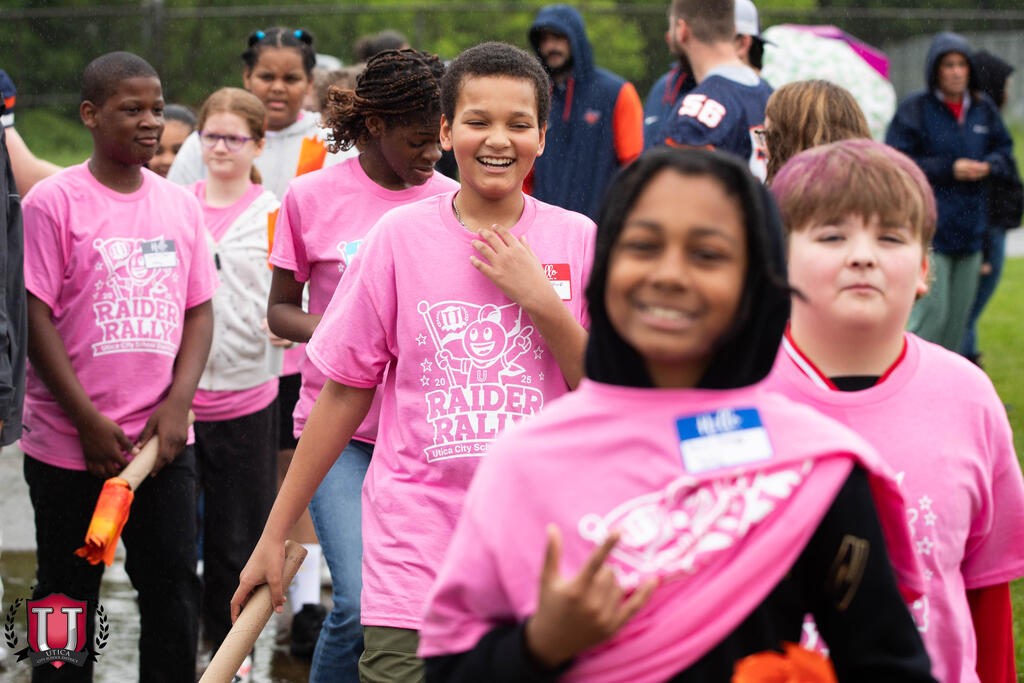 Ny alakamisy 29 mey, ny Utica Ny Departemantan'ny Fanabeazana manokana ao amin'ny City School District dia nampiantrano tamim-pireharehana ny Raiders Rally: fankalazana manerana ny distrika momba ny fahaiza-manaon'ny mpianatra, ny fampidirana ary ny reharehan'ny Raider ao amin'ny kianjan'ny atletika JFK. Na dia teo aza ny oram-batravatra, feno hafaliana, hery, ary fanahy Raider tsy voahozongozona ny andro!
