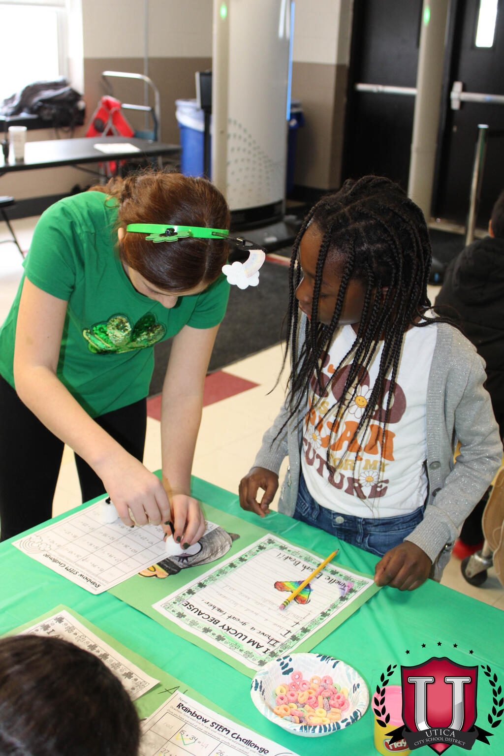 Second grade students and their families recently participated in a fun filled Rainbow STEM Challenge at Jones Elementary School. Using math problems to earn cereal pieces students created their own rainbows while engaging with their community across second grade classrooms!